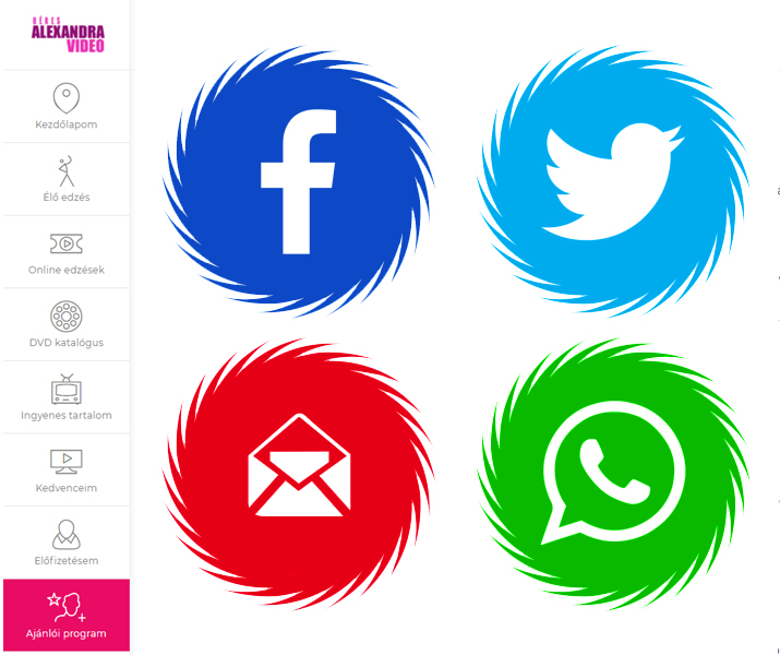 3. És persze létezik a - talán - leggyorsabb módszer: hozzád is, mint minden video.beresalexandra.hu felhasználóhoz tartozik egyedi azonosító hivatkozás (link) is. Ezt közvetlenül továbbíthatod e-mailben, vagy bámilyen más módon – rendszerünk tudni fogja, hogy aki az előfizetést erre kattintva regisztrálja, az a Te közvetlen ajánlásodra érkezett hozzánk.